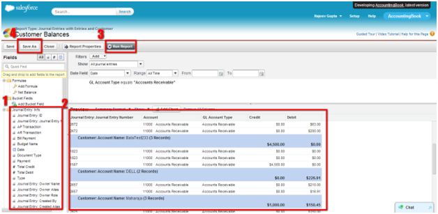 SalesForce for AccountingBook allows all users to run, customize and create reports. You may create new report from a standard report and save it in My Personal Custom Reports folder. In the left side you can view all the folders that you as a user have accesses. You can save your custom report in the folder in My Personal Custom Reports.