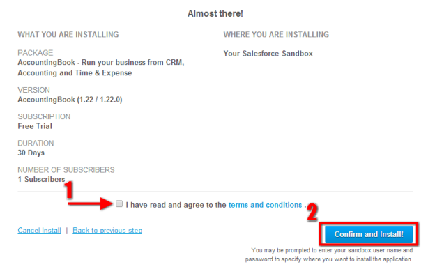 - Click on Install in production to get AccountingBook installed in SalesForce