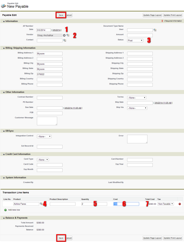 - The new page allows you to enter a new payable