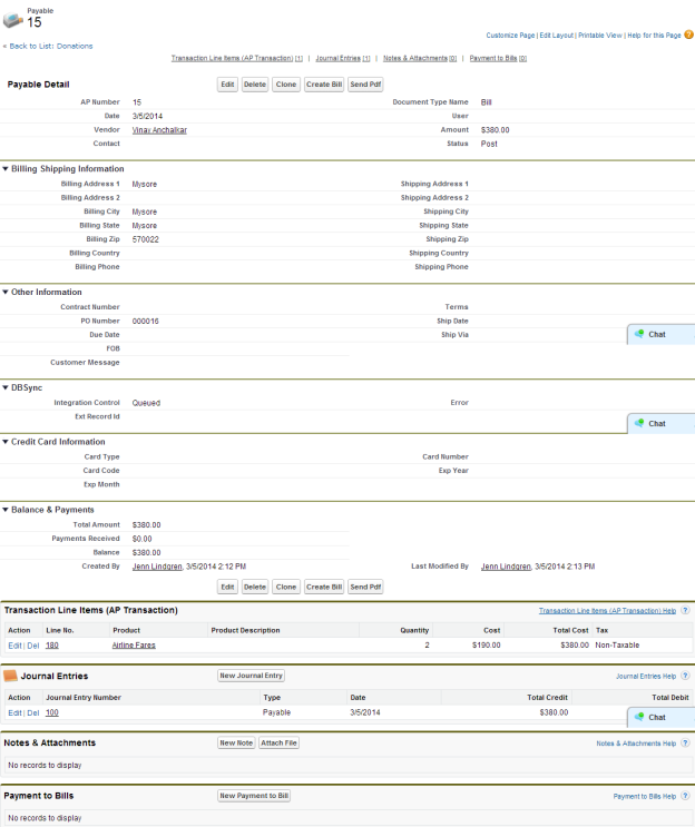 On clicking the Save button Payable Detail page is opened.