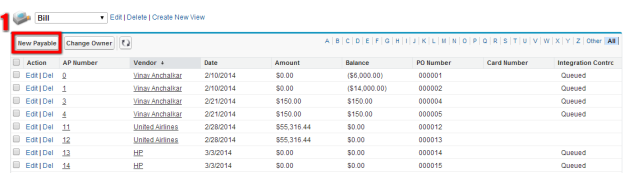 Click on Payables Object in the Home Page