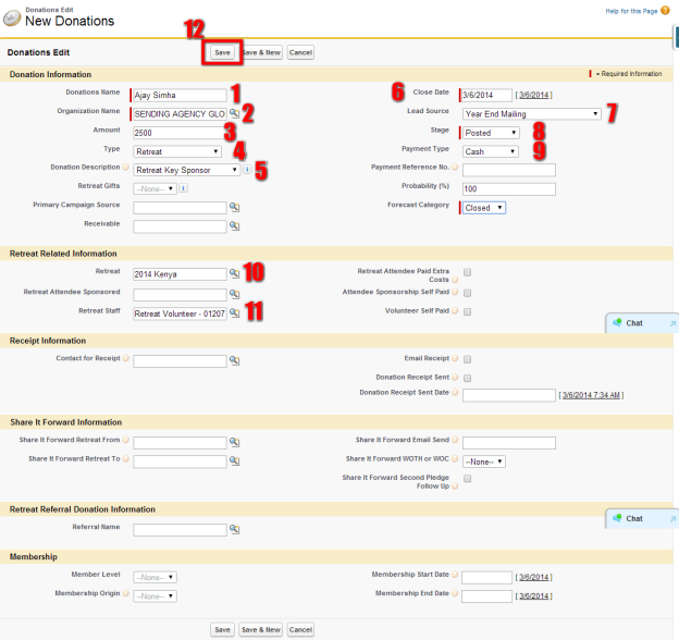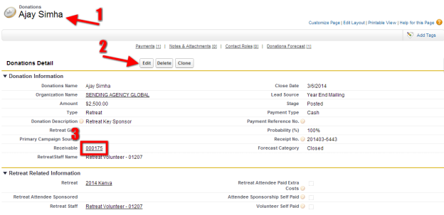 This covers creating an Item as a Retreat Staff and GL Account of the Retreat in the Donation, and Donation is automatically created as Sales Receipt in the Receivable Object.