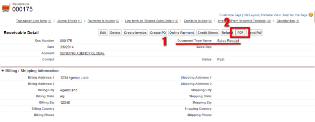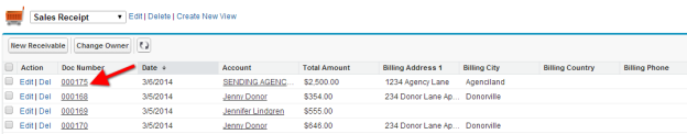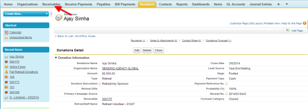 5. When a Donation is posted, Sales Receipt is created automatically in the Receivables Object. Let us look how Sales Receipt is created.
