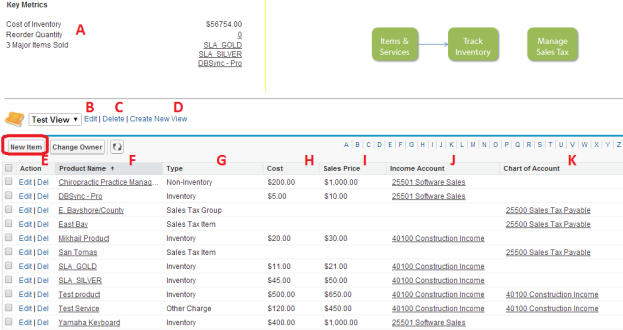 G. Type shows you the item is Non-inventory or Inventory or Sales Tax item, etc