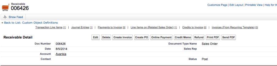 - Open any "Receivable" object and click on Edit. This will open an enhanced Receivable
