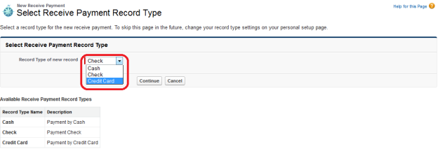 Select an appropriate Payment Record Type from the dropdown menu and Click on Continue button.
