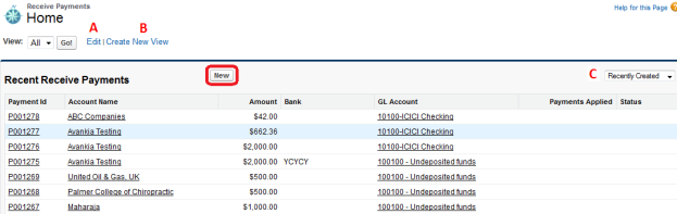 C. "Recently Created" Allows you to view the Recently Created, Recently Modified and Recently Viewed payments from the dropdown menu