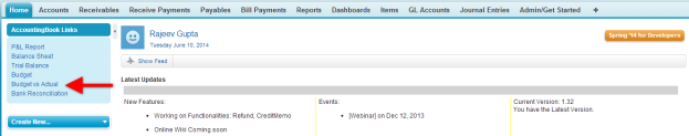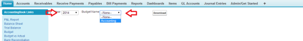 Click on Budget Vs Actual in the AccountingBook Links in the home page