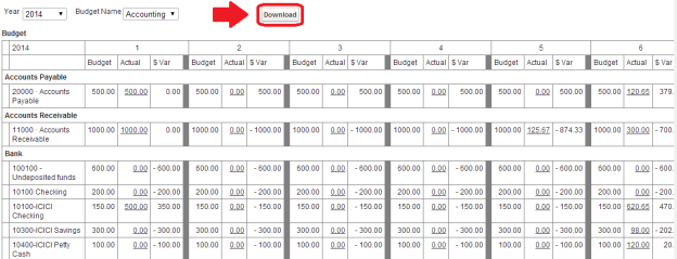 A new page opens, where the Variance between the Budget and the Actual is shown. You can click on the Download button to download the Variance spread sheet for future references