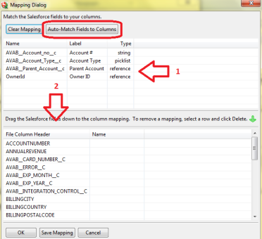 You are supposed to match the SalesForce rows and the CSV files' columns by dragging the SalesForce items to the CSV files' items. To help you to map these fields the packages has an option of Auto-Match Fields to columns button. The only thing you need to do is to click on the button. Most of them will be auto matched and the remaining you need to manually drag the items to match them.