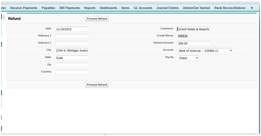 Refund1. Process Refund through Credit Memo- If Credit Memo is not applied to Invoices as discussed above, in that scenario, Refund can be processed against the Credit Memo.