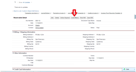 The concerned Invoice will show the remaining balance as Invoice Balance against which either a new Credit Memo can be created or Payment can be received. Apply Credit Memo to Invoices- This is applicable in case Credit Memo is not created directly from the Invoice as discussed above.