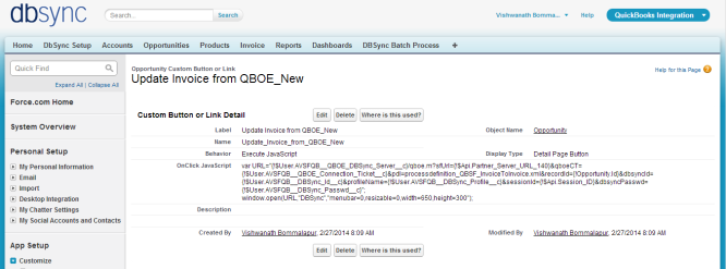 - Salesforce Custom Button Update Opportunity to QBOE and Update Invoice from QBOE in Opportunities Object.