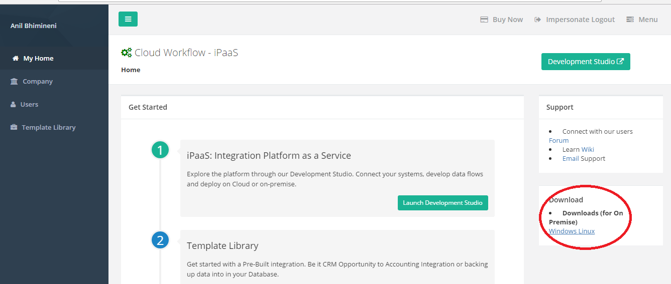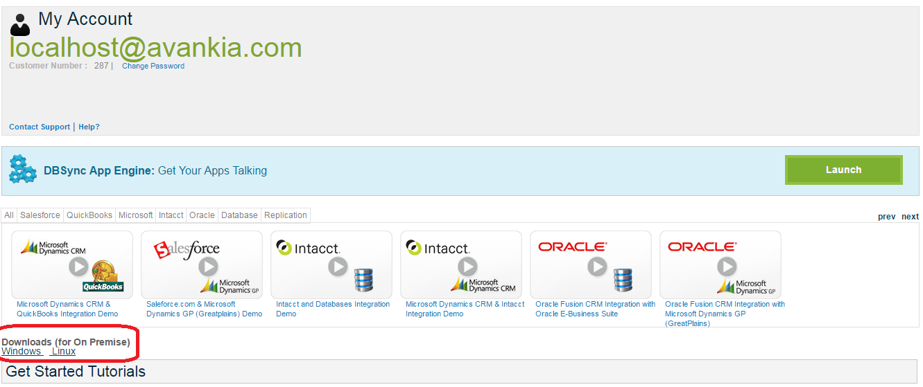 - After logging in, go to My Home and click on Launch button in the console area of the page to launch DBSync Console. You should be re-directed to the DBSync console page.