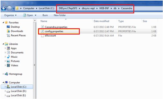 - Locate the properties file config.properties by accessing the Cassandra folder saved in the below path