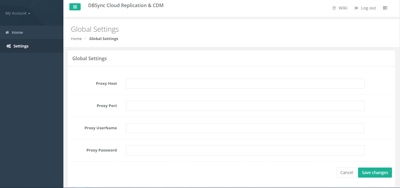 Follow these steps to configure a proxy global settings in DBSync replication portal.