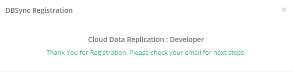 This quickstart shows you how to get started to registration flow under DBSync registration platform with 3 differents editions like Developer, Enterprise for On-Cloud and Enterprise for On-Premise.