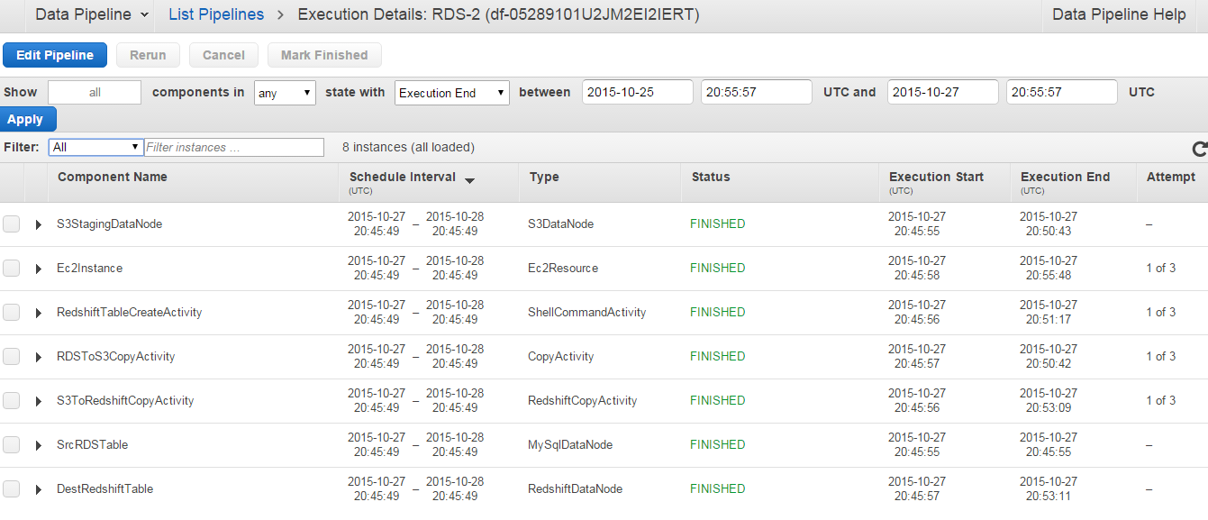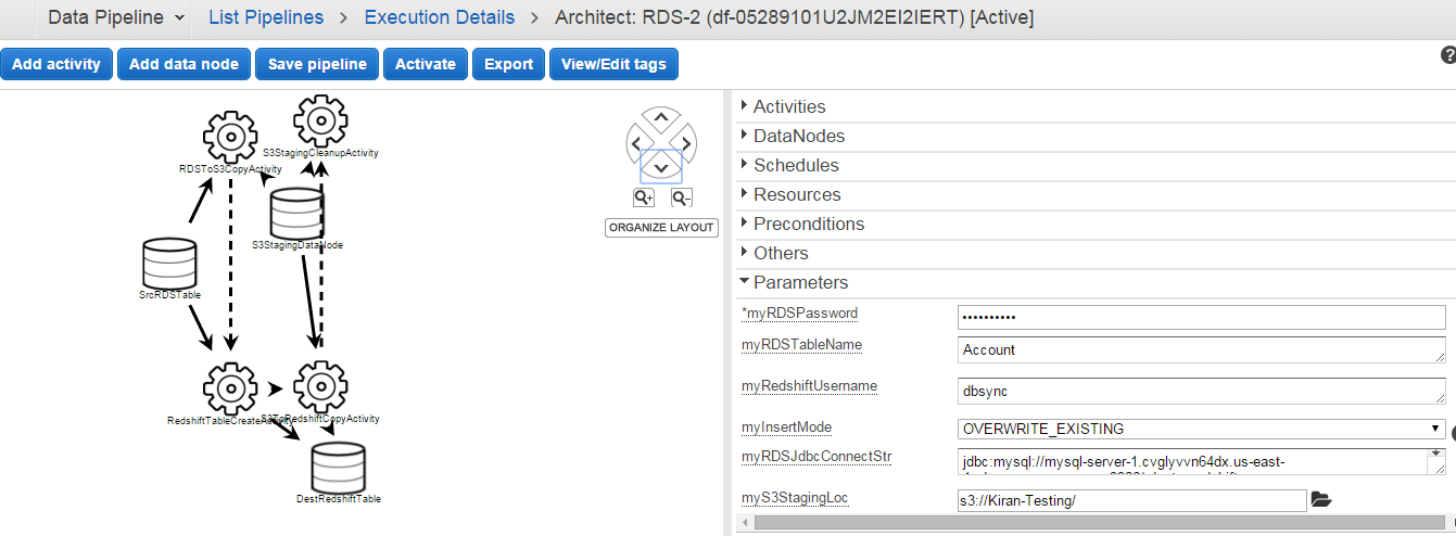 Setting up AWS Datapipeline for RDS MySQL to RedShift
