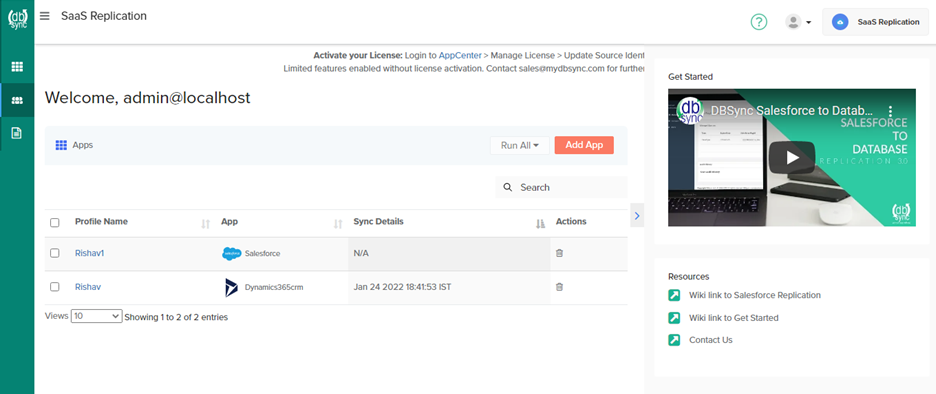 - Log in to DBSync Cloud Replication instance