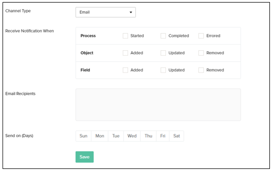 - This is an optional configuration. If you do not choose any specific days to be notified, then the notification will be sent as an when the event occurs or completes.