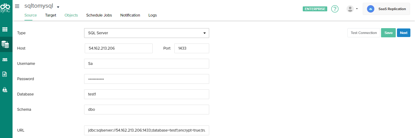 Start with the Source database setup tab, to fill all the necessary details and follow the same procedure for testing and validating your database credentials.
