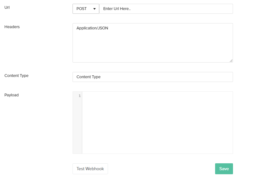 - Select 'Webhooks' as the channel type and the settings will appear on the screen as seen in the below image