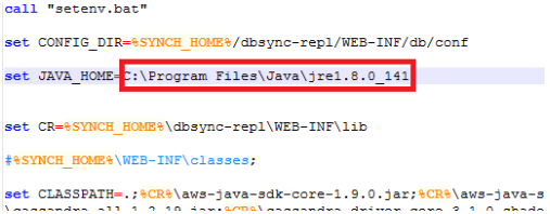- Go to <install folder>/dbsync/scripts. Make sure that setenv.bat points to your install directory.
