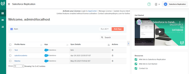 - To access the DBSync Cloud Replication console, Paste https://localhost:8080/dbsync URL in your browser address bar and you will be presented with the DBSync Cloud Replication Home page.