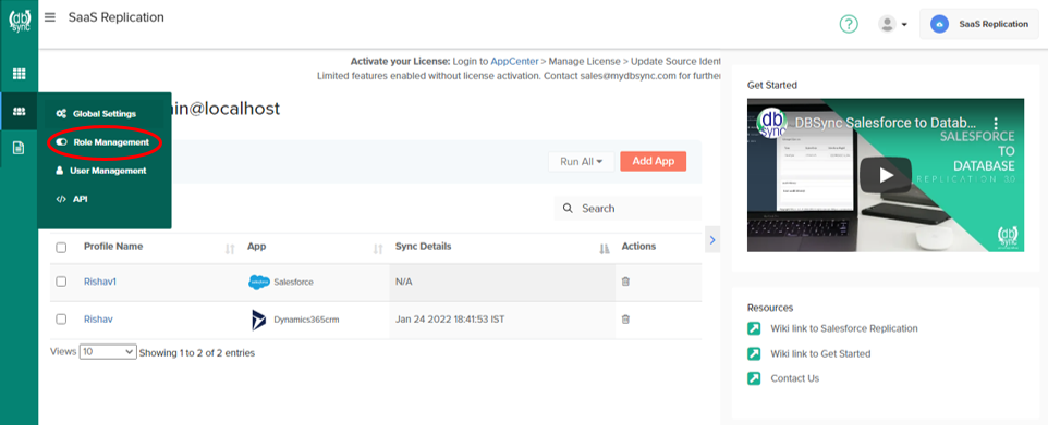 Role Management functionality of DBSync Replication enables the admin to create roles with specific user permissions such as read, write and delete. The users with these roles can perform the functions defined by permissions.