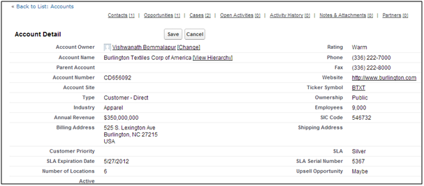 Step 1: Salesforce Account Details are as shown below. Let us replicate all the fields in the Accounts Object except Billing Street and Billing City fields.