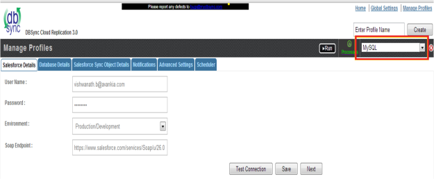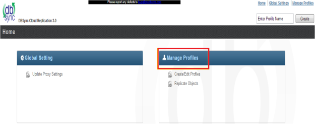 - Start DBSync Replication User Interface and select Manage Profiles.