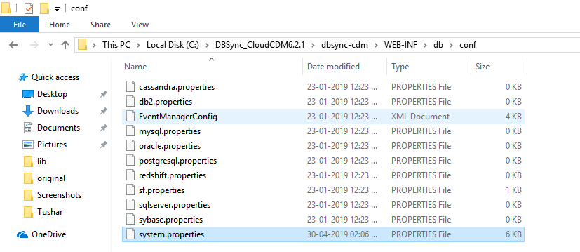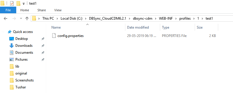 • config.properties must be accessed from the installation folder. The following path can be referred dbsync-cdm> WEB-INF > profiles > Org Id> config (the required profile name) > config.properties