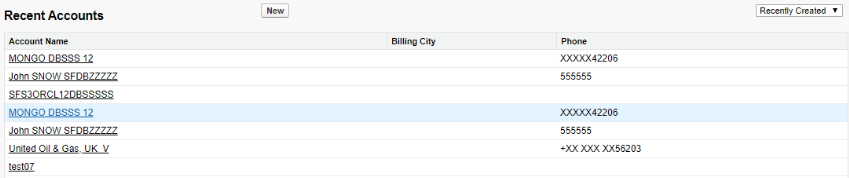 - In the final step, you have to go back to your Target Salesforce and check in the Account section all the phone numbers have mentioned in the records were masked by the Data Masking functionality. Check the below image for your reference.