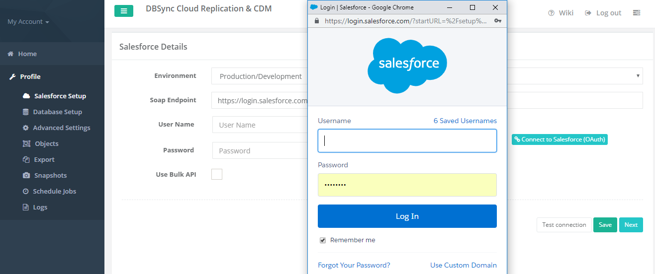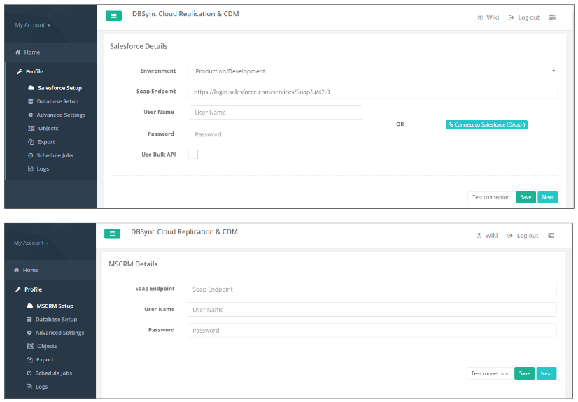 Source application profile Includes Salesforce and Microsoft CRM. The source app profile is created within DBSync Replication platform.