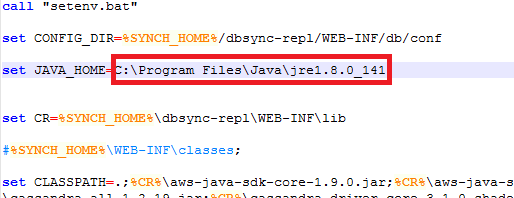 - Go to <install folder>/dbsync/scripts. Make sure that setenv.bat points to your install directory.