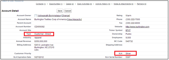 • ‘Accounts’ object in Salesforce is as shown below and the same needs to be replicated to database only when the Type is ‘Customer – Direct’ and SLA is ‘Silver’.