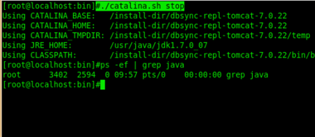 At this point, the DBSync Cloud Replication tool is installed on your Linux server. You can start the DBSync Cloud Replication tool by navigating to the bin folder and running the command from the terminal window