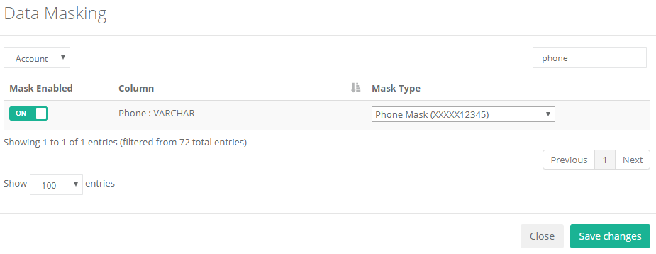 19. Here, I have selected the Phone Column and enabled the mask. On the right side, you will see the drop-down menu to select the mask type.