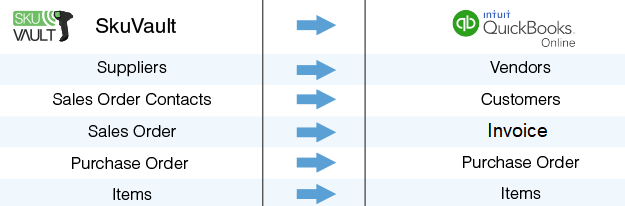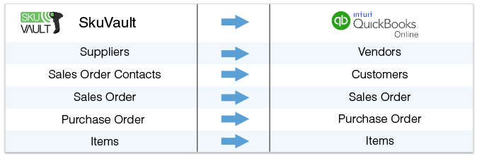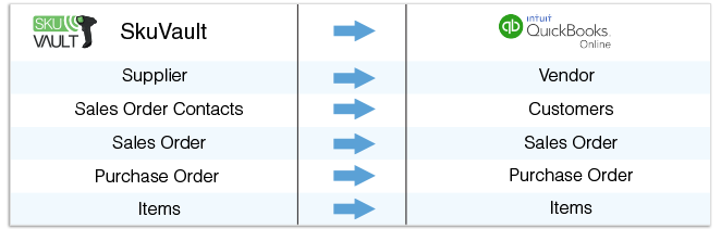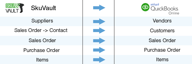 Vendor Integration: SkuVault Suppliers are integrated with the QuickBooks Online Vendors module. The data flow between the entities is unidirectional - with the transfer of data from SkuVault into QuickBooks Online - based on the last successful run in DBSync.