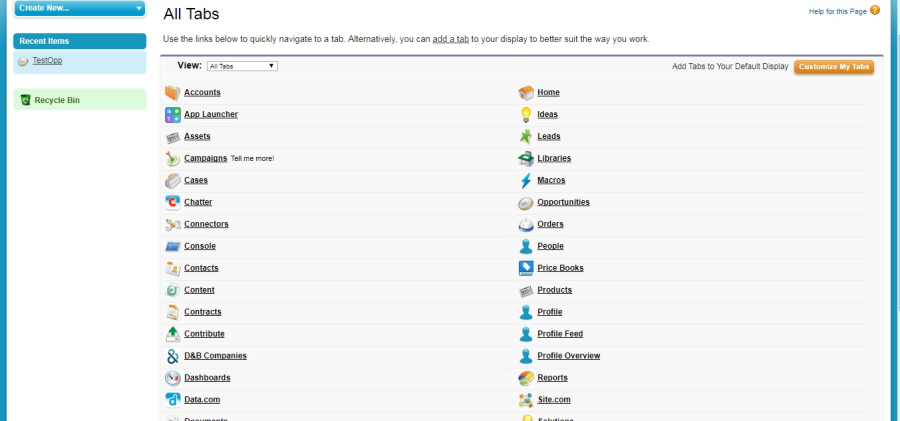- Click on 'Customize My Tabs' button located on the top right corner of the All Tabs page.