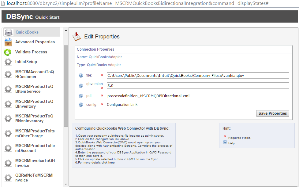 - This completes the configuration of your DBSync profile with your Microsoft Dynamics 365/CRM Online instance and QuickBooks desktop.