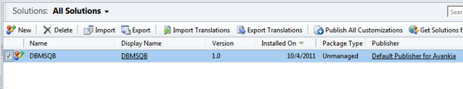 - Once the Solution Packages are uploaded to your Microsoft Dynamics 365/CRM On-Premise instance, you should be able to see the same in the Solutions list as shown below. Click on Publish All Customizations button to commit all the changes done to your Microsoft Dynamics 365/CRM instance.