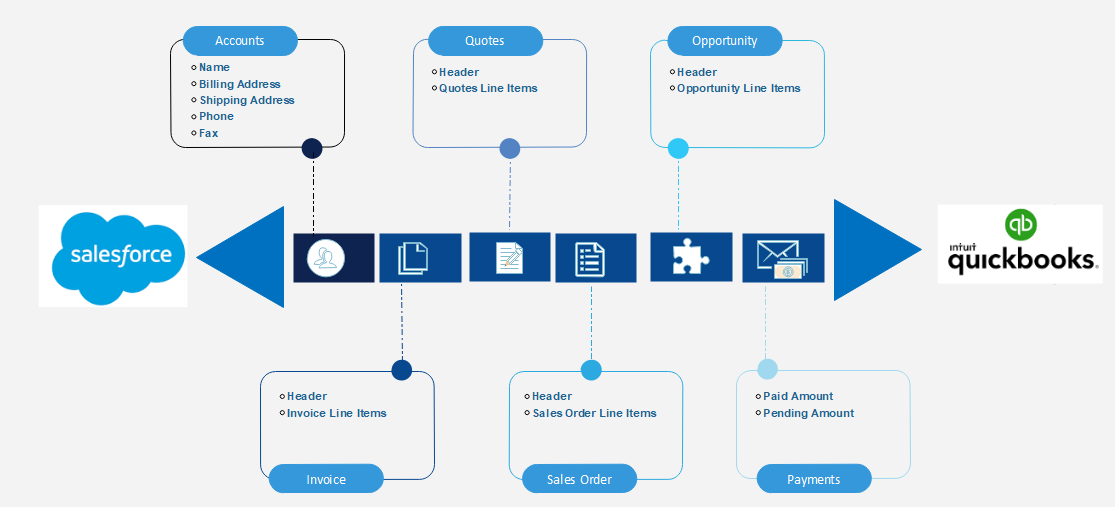 DBSync Jumpstart package for Salesforce & QuickBooks Integration is an easy to use solution template. You can buy the template to do receivable automation between your Salesforce CRM and QuickBooks accounting software. The solution template acts as a plug & play solution. It automates integration of Customers, Orders & Invoicing with your QuickBooks software based on incremental updates and increased visibility across both the systems.