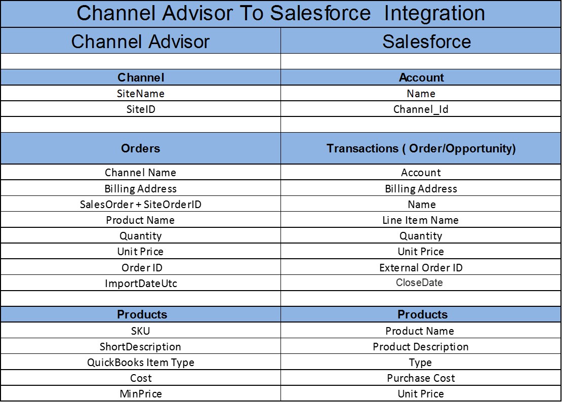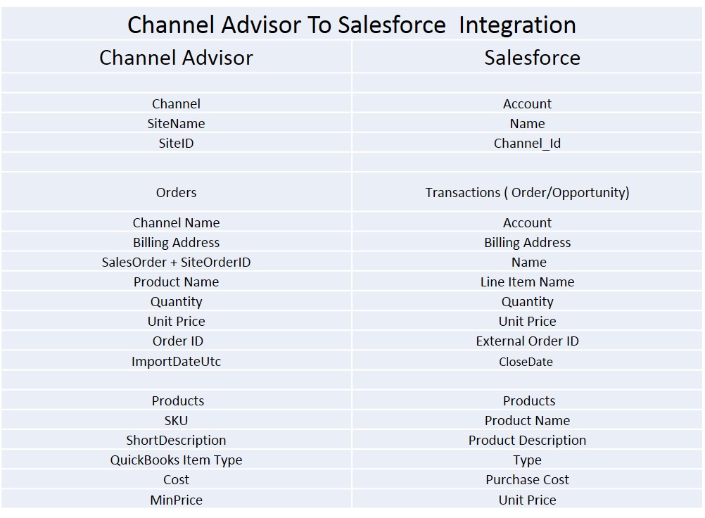 ChannelAdvisor to Salesforce - Field Mapping