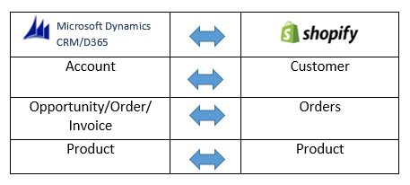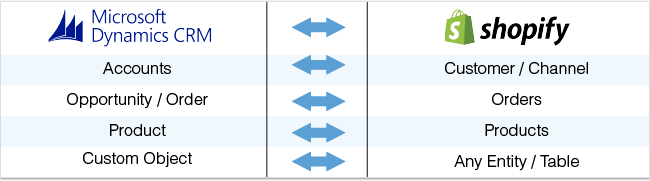 DBSync for Microsoft Dynamics 365/CRM & Shopify integration template is easy to use integration solution. It integrates Microsoft Dynamics 365/CRM Accounts, Products, and Opportunities with Shopify Customers, Products and Opportunities.