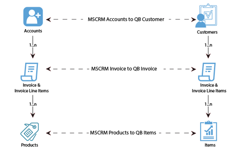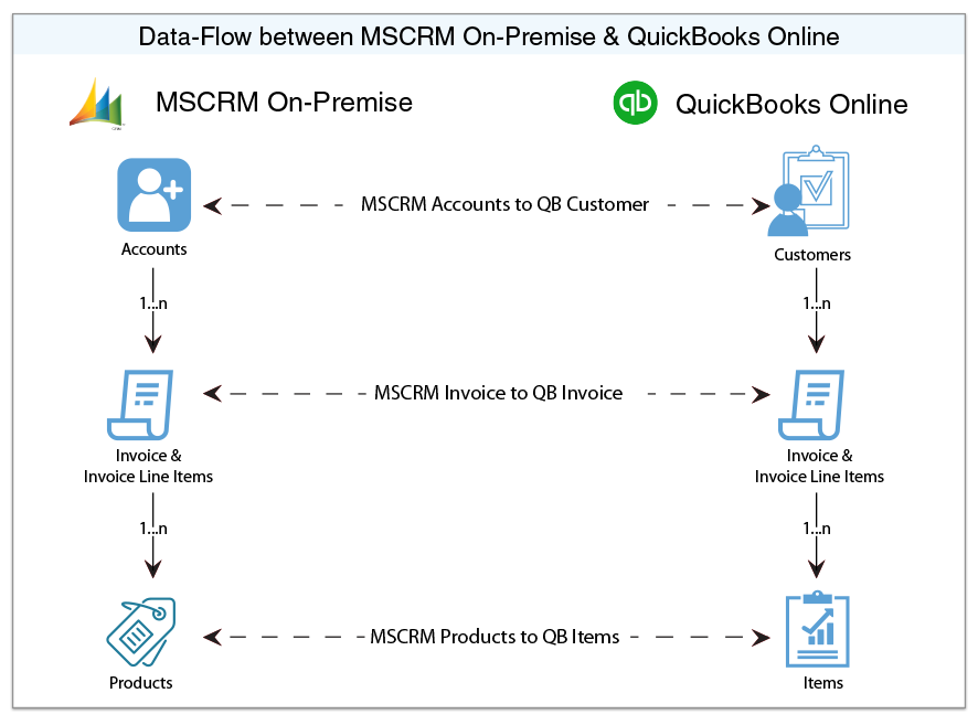 Process Map of Bi-directional integration between Microsoft Dynamics 365/CRM On-Premise & QuickBooks Online is shown in the image below: