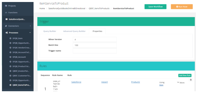 - To query the Items with SKU values from Quickbooks, Add Minor Version as 4 in DBSync Trigger section properties.