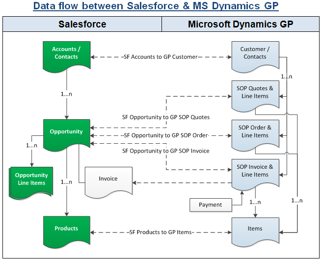 DBSync for Salesforce & Microsoft Dynamics GP Integration is an easy to use application. It integrates Salesforce Accounts/Contacts, Products and Opportunity with GP Customers, Items and SOP Transactions respectively. DBSync is also useful in migrating historical GP data into Salesforce or vice versa. DBSync provides Bi-directional sync with pre-built field-to-field mapping along with the flexibility for more complex and dynamic mapping capability.
