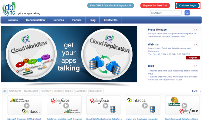 - Go to www.mydbsync.com & register for Free Trial. Ensure that Source & Target Adapters are Salesforce & Microsoft Dynamics GP respectively.