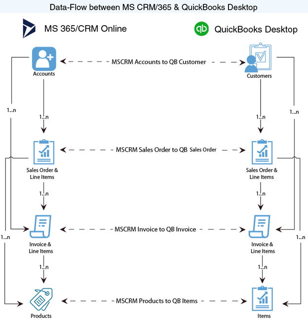 Process Map of Bi-directional integration between Microsoft Dynamics 365/CRM Online & QuickBooks Desktop is shown in the image below.